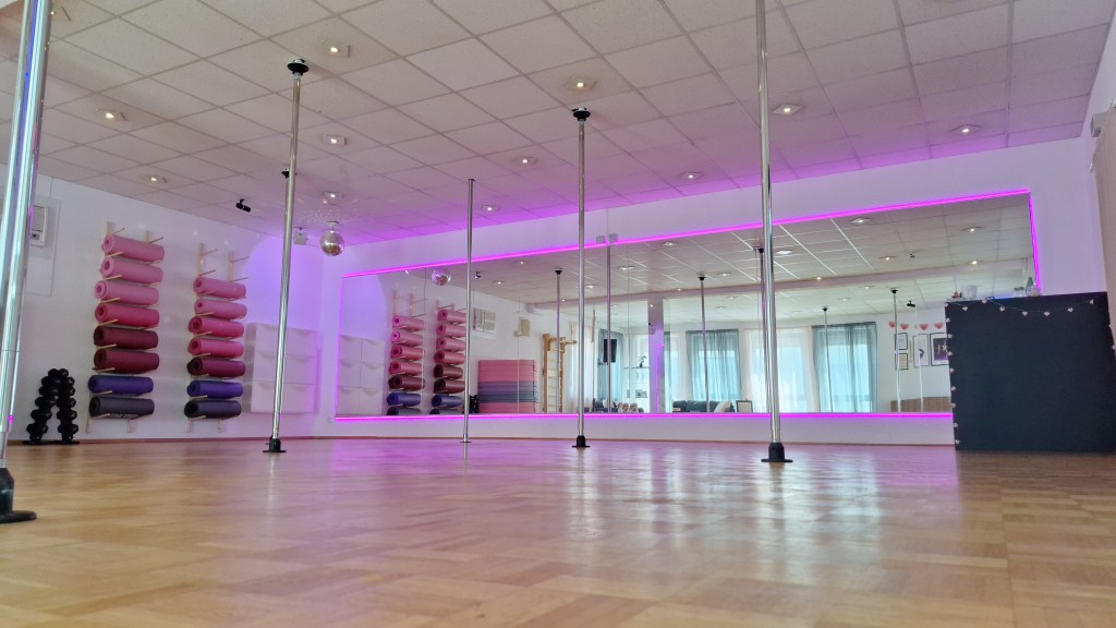 Suchen Sie nach einem geeigneten Raum für Ihren Tanzkurs, Yoga-Stunden oder andere Bewegungs- und Entspannungsangebote? Die Poledance Stangen in unserem Raum lassen sich an die Decke hochklappen, somit ist ausreichend Platz für kleinere Gruppen bis 15 Personen. Unsere Räumlichkeit mit Parkettboden und Klimaanlage bietet den perfekten Rahmen für Ihre Kurse und Workshops. Wir sind auch ausgestattet mit Gymnastikmatten, Yogablöcken und Pilatesbällen.